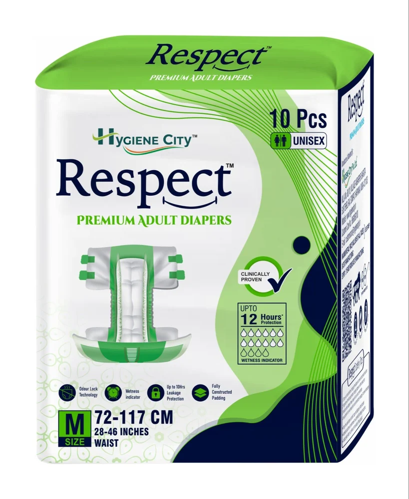 Ensure comfort, hygiene, and confidence every day with Respect Adult Diapers. Designed with advanced absorbent technology, these diapers provide reliable protection against leakage and odor, keeping the skin dry and irritation-free for long hours.